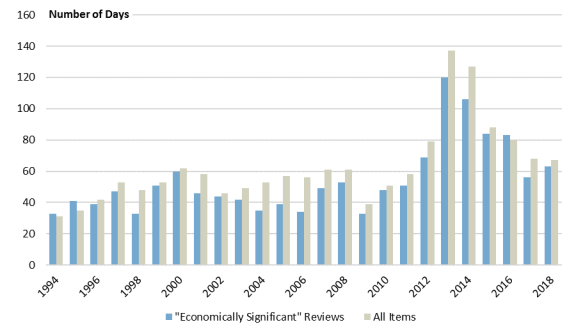 In this section, the reference to "all reviews" or "all items" refers to all the various types of items that OIRA reviews, including prerules, proposed rules, interim final rules, final rules, and notices. The broad "all reviews" categories includes all of these items, regardless of whether they are also deemed "economically significant." |